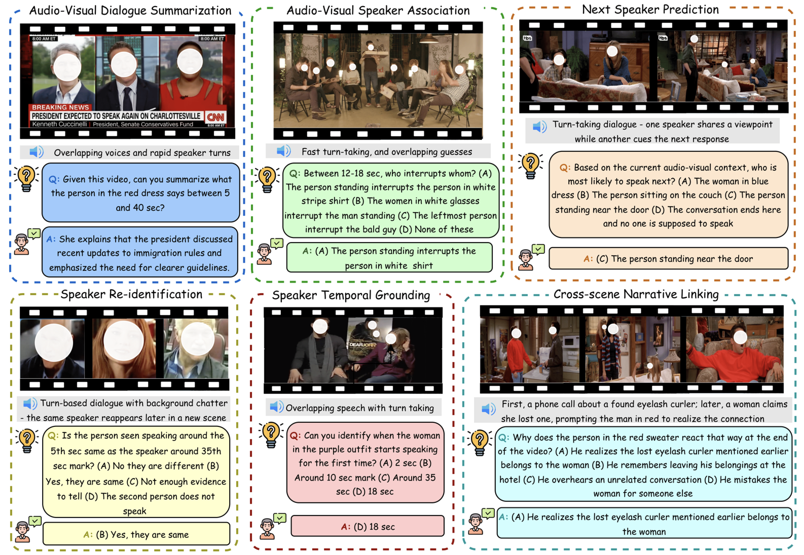 We introduce AMUSE, a benchmark for evaluating multimodal large language models on agentic multi-speaker audio-visual reasoning, and propose RAFT, a data-efficient agentic alignment framework achieving up to 39.52% relative improvement.