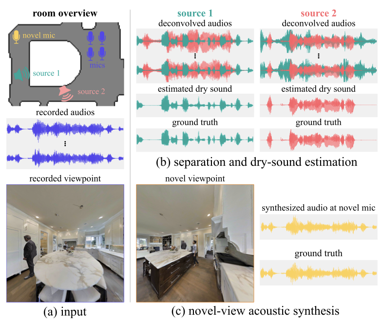 We combine blind audio recordings with 3D scene information to estimate sound anywhere in a scene, jointly tackling source localization, separation, and dereverberation.
